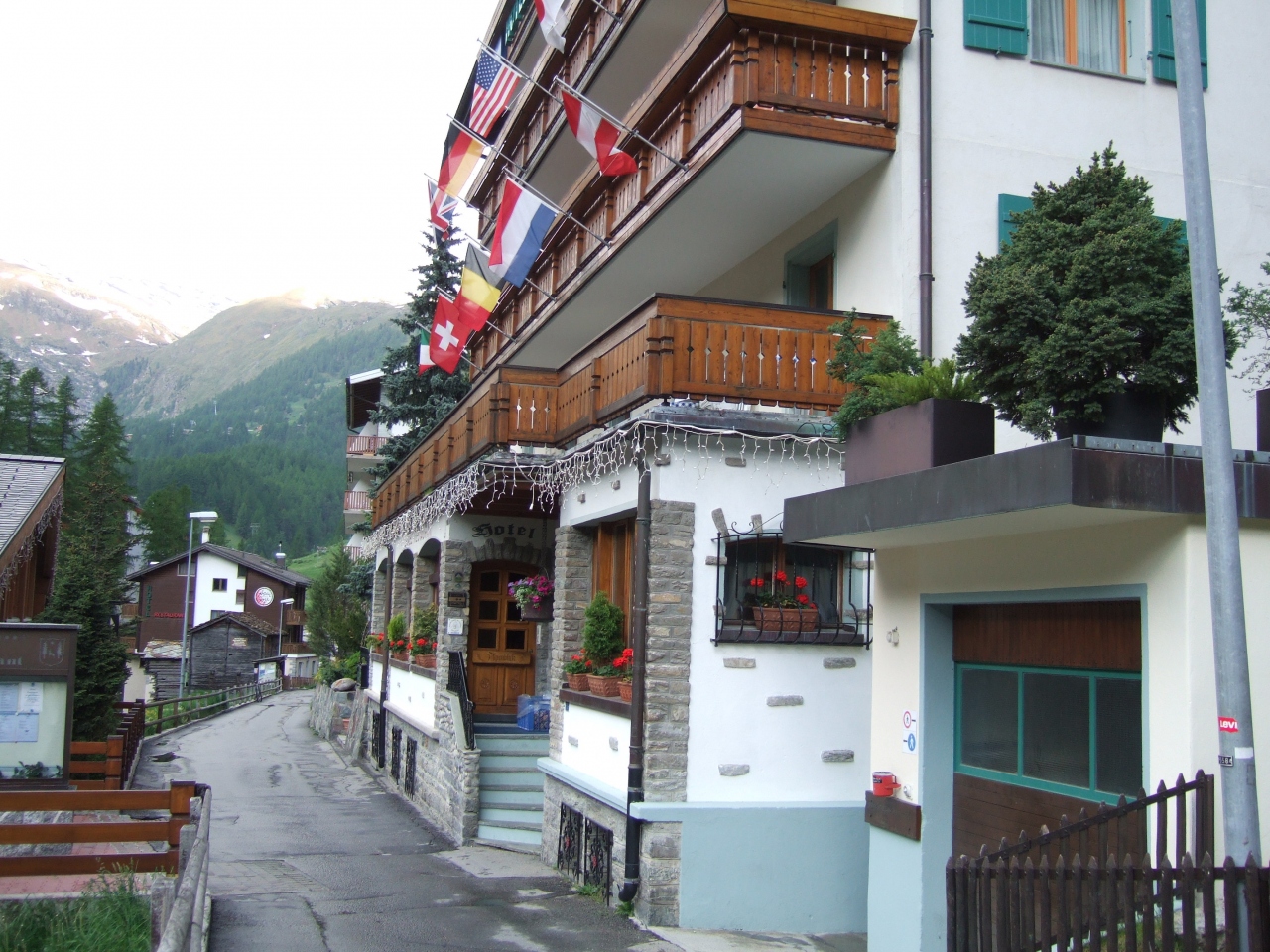 ツェルマット駅から徒歩8分位で町の風景を見ながら