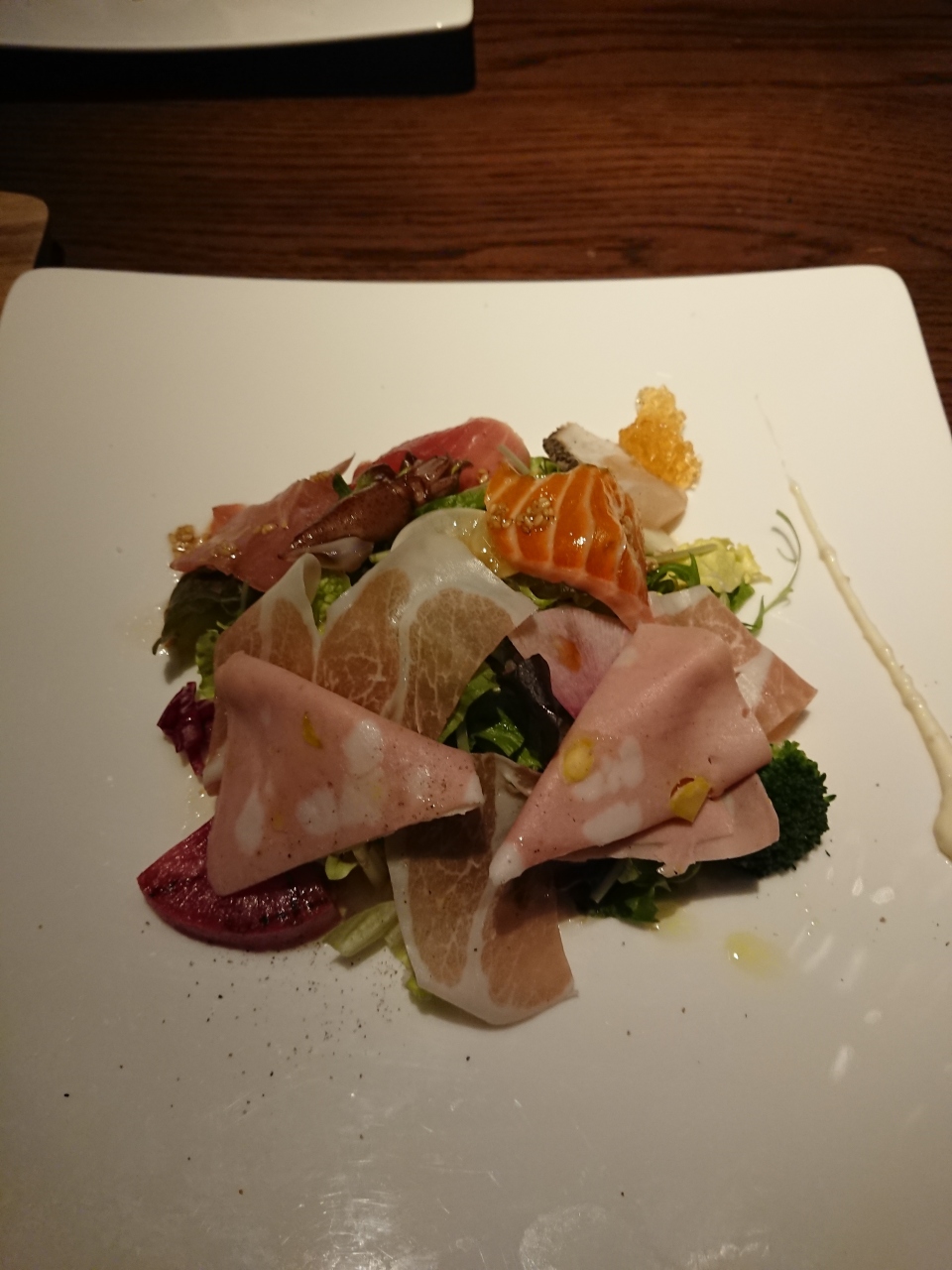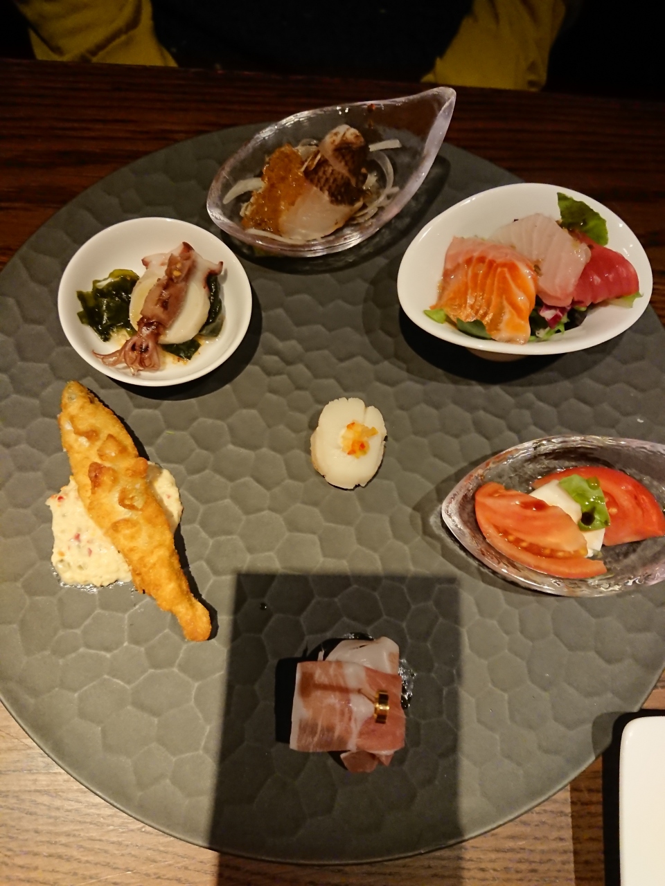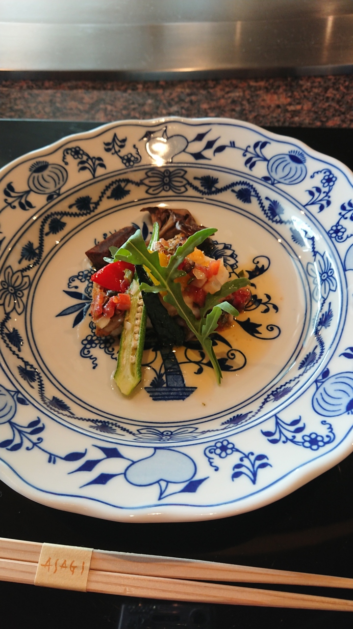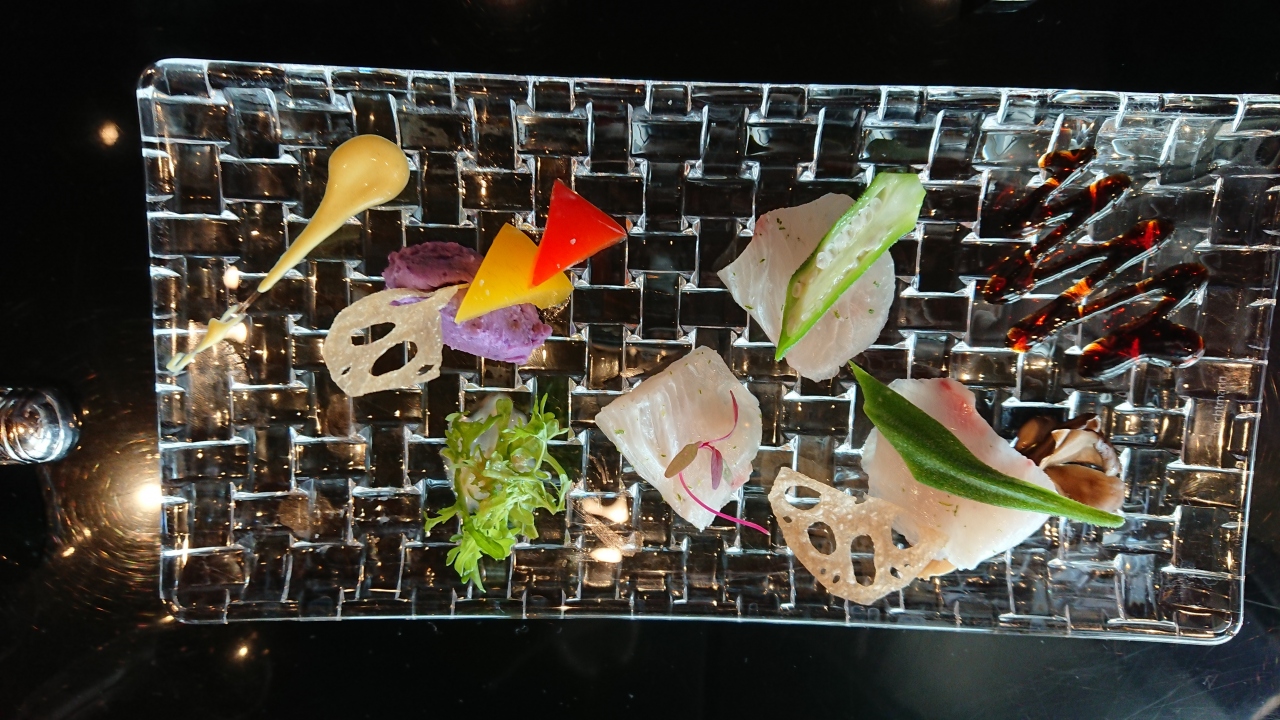 前菜などはフレンチとの融合で鹿児島県産黒毛和牛を美味しくいただきました。