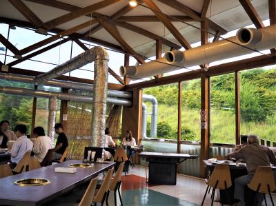 黒川温泉の歴史の宿『御客屋』の姉妹店で、明治期の古民家を移築したそうで、ゆっくり落ち着ける雰囲気です。地元の食材を使った料理を揃えていて、無添加、安心、安全、美味を心がけているそうです。熊本あか牛を使ったメニューも色々とありましたが、あまりお腹も空いていなかったので、和牛カレーをオーダーしました。もう少し軽食っぽいのもあれば良いなぁって思いました。暑い日だったので、熊本産レモン100%使用の冷たいレモンスカッシュもとても美味しかったです。