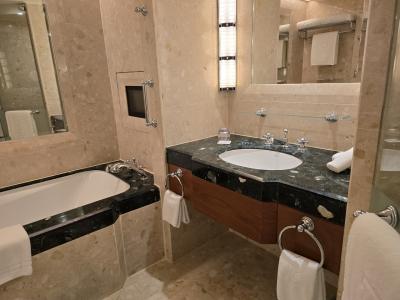 バスルームは大理石。浴槽、シンク台は写真のものが対面に計2か所もあり、...