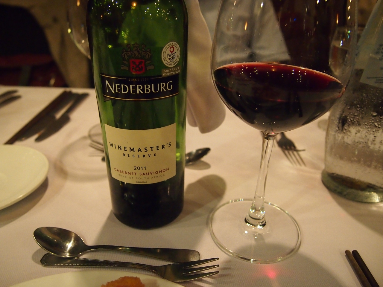 ワインは、スパークリング、白、赤、デザートワイン、夜中の12時ころやっと食事が終わってホテルに帰れると内心喜んだら、食後のワインとチョコレートなどのつまみが出てきて、夜はまだまだ続く。夜は10時ころから客が入りはじめ、12時ころが全盛。