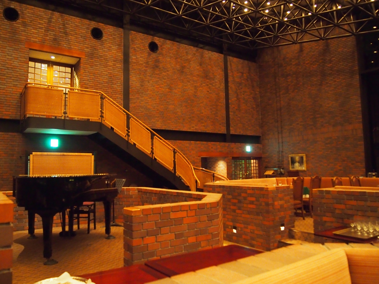 2階まで吹き抜けの店内は、赤レンガの重厚な雰囲気で、大きなガラス窓の外にはプリンスホテルゴルフコースの池とライトアップされた飾りが見えて、景色も良い。