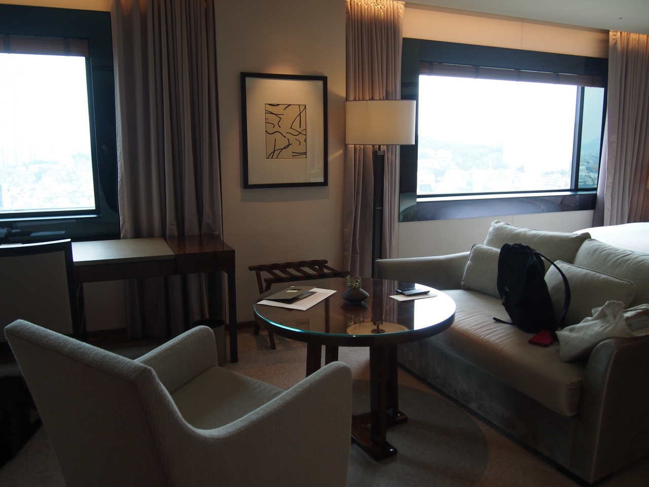 ビジネスデラックスルームに宿泊。数年前に大改装され、新しく豪華。43?の客室はソウルではトップクラスの広さで、バスタブはコーラー社、金具はグローエと新しく一流の設備だった。ロッテやチョスンに比べても広く豪華で新しい。