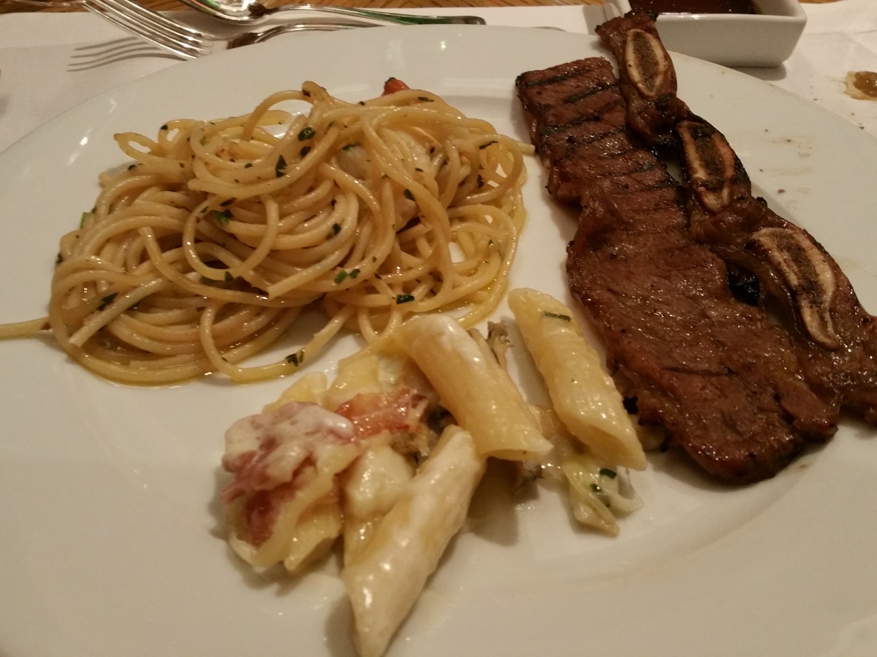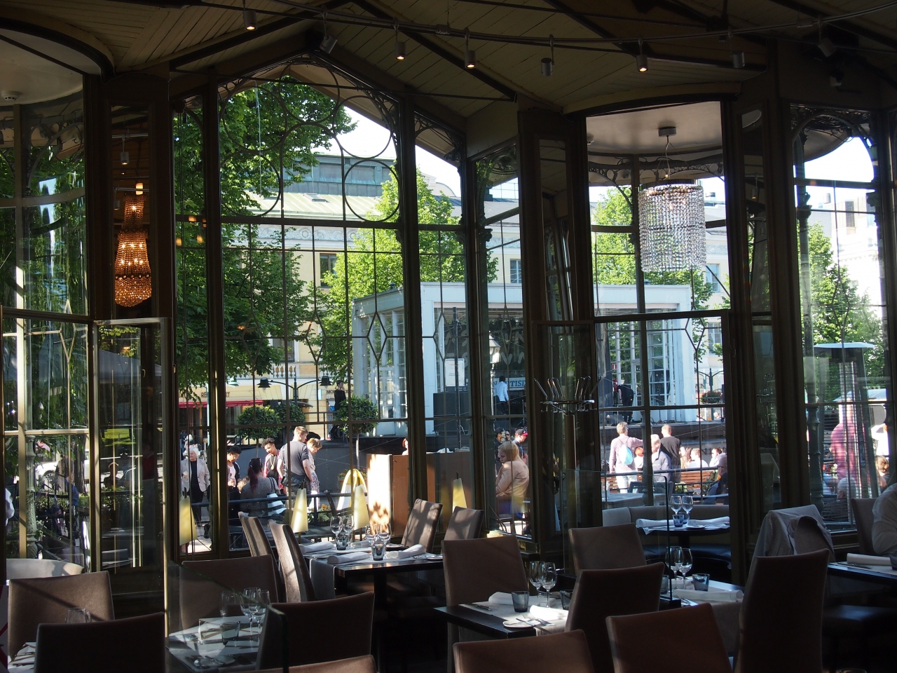 前菜と、魚か牛肉のメイン、デザートの3品コースが45ユーロだったので、前菜にサラダ、メインは牛ステーキ、デザートは大きな焼きプリンだった。ボリュームもほどほどにあり、牛ステーキはクリームがおいしかった。ほかにフィンランドらしくトナカイのステーキなどもある。ほかにワインが40ユーロ前後でたくさんある
