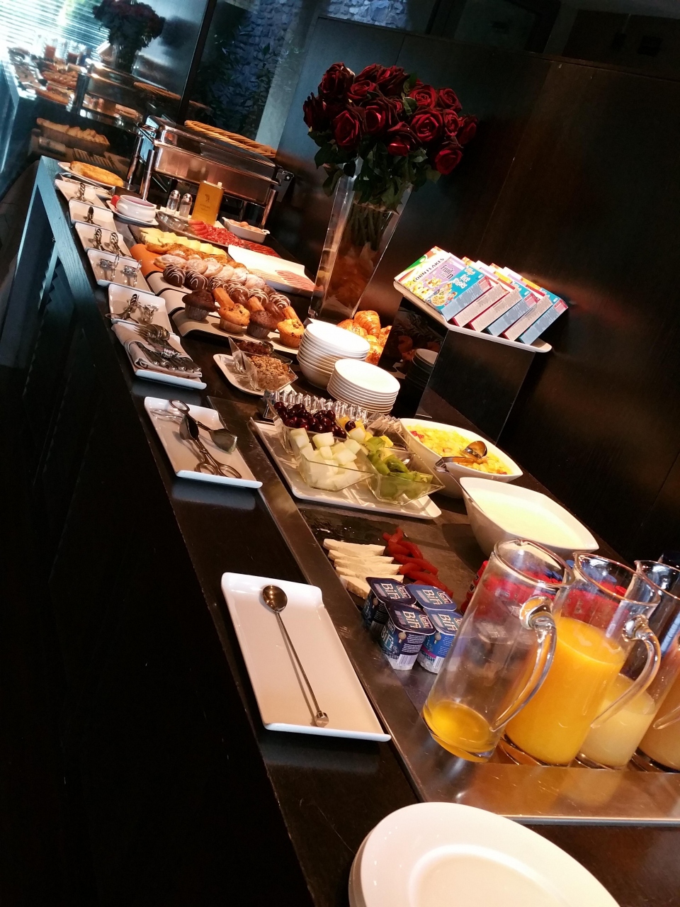朝食は、小さなレストランで食べるが、おしゃれな雰囲気で気持ちよく過ごせる。ジュースや果物の種類が多く、ハムやチーズ、シリアルが少々。卵料理はオーダーで作ってくれる。コーヒーはコーヒーメーカーに好きな豆のカプセルを入れる。一度だけ中国人の団体に遭遇したが、ほかは空いていて、ゆっくり食べられた。- 旅行時期