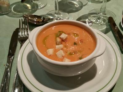 パンプローナ中心のホテルヨーロッパ内のレストラン。白い内装で清潔感のある店内は、高級な雰囲気。現地のスペイン人社長が予約してくれて、ヨーロッパ人と日本人計9人で大きなテーブルで夕食を食べた。