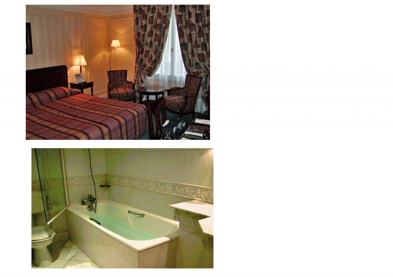 部屋は、ベッドに小さなテーブル・椅子で、ほぼ一杯。バスルームも今の水準からは広くは無く、浴槽や水洗金具も新しいものではない。