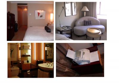 ドライア・バスローブ・使い捨てスリッパ・傘・ショッピングバッグ・(部屋別fax複合プリンターは2007年1月には無くなっていた)、携帯電話、パソコン(オフィスタイプ)、無料のコーヒーや紅茶など、高級ホテルに必要な全ての備品がある。