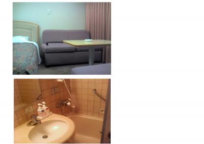 レイクビューの普通の部屋でも、ツインベッドに、ソファがベッドになり4人家族でも十分利用できるように広さを確保している。バスルームも広い。