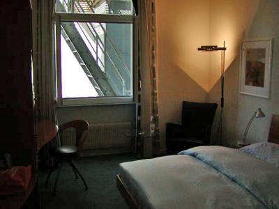 小さなホテル。古い重厚な外観だが、部屋は近代的にリファインされ、バスルームも、色も器具もモダン。部屋は狭い。家族5人だが、コネクティングが無く2部屋に分かれた。