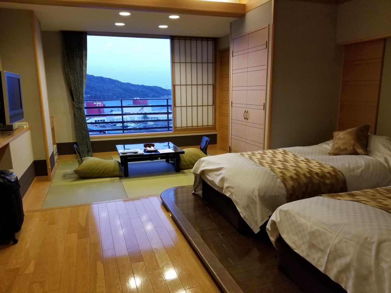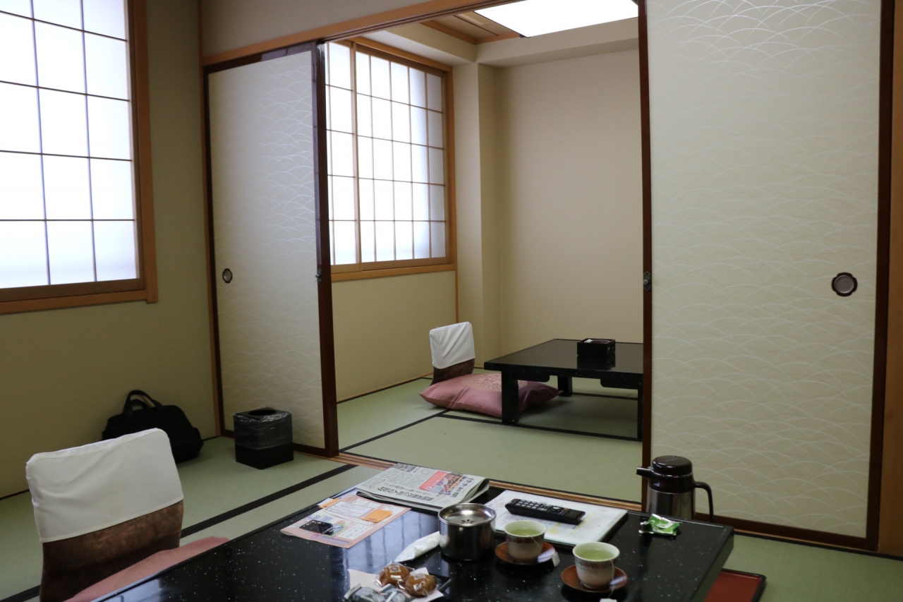 部屋は南館の和洋室に泊まったが、ツインベッドに畳コーナーがあり、室内・水回りも現代的にリフォームされてきれいだった。