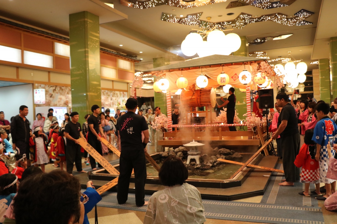 大型旅館だが、チェックイン時の説明、部屋への案内係の説明共に愛想よく好感が持てた。夕食はバイキングにしたが、チェックイン時に時間調整し予約するので、大きな混雑はなかった。大きな会場だが、和洋中の料理の種類も多く、ステーキや天ぷら、串揚げ等は目の前で作ってくれた。大浴場は25mプールのような大浴場にわたの湯の白い湯の露天風呂があり、別料金の有料風呂も予約しておいたが、こちらは大浴場のみだが空いていて良かった。湯もみショーは子供だましのようでがっかりしたが、設備が整い、大型旅館の良さが出ていた旅館だった。