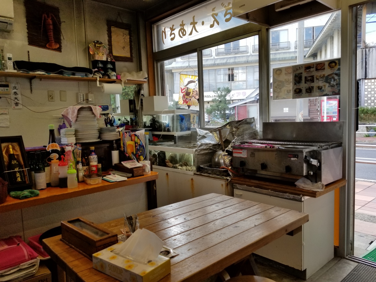 鳥羽駅のJR側を下りて道路沿いにある、連投式店舗の一番奥にある。同じような貝を焼いて食べさせる店が並ぶ中を選ぶのに迷って、一番奥の店に入ってみた。