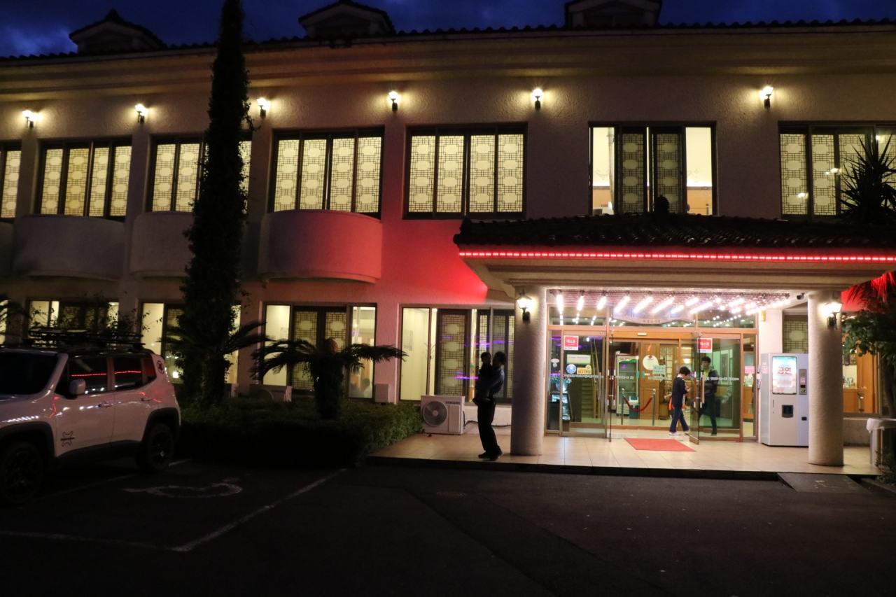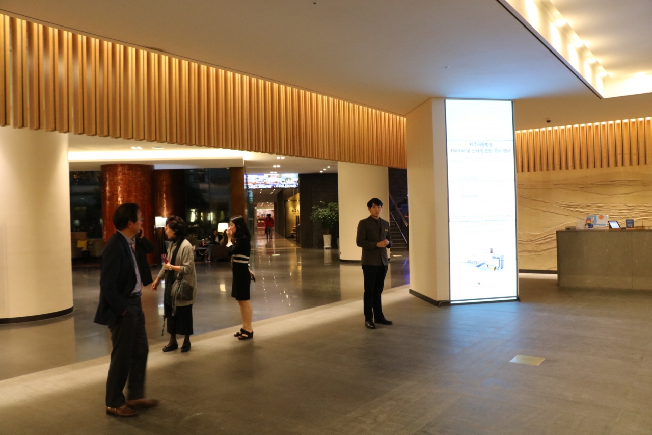 チェジュ市内にある大型ホテル。昔からあるチェジュグランドがリフォームして名前が変わった。カジノやレストランも数軒ある大きなホテル。部屋もリフォームされきれいになっているが、現在の高級ホテルからすると狭い。会社の展示会や研修や行事に来ている背広を着てネームプレートを下げた、ソウルからの会社員団体が多かった。ホテルの前が新羅免税店、周辺は飲食店が多く便利な場所にある大型ホテルだ。