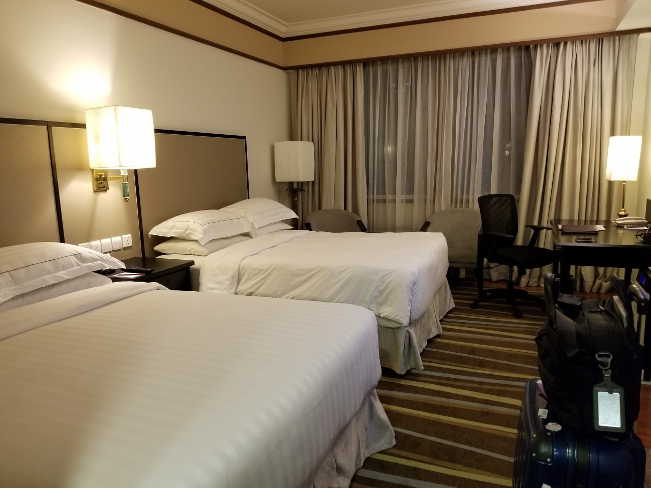 パッポンまで数分の場所にあり便利。繁華街にあるため大きなホテルではないが、新しくモダンで、SPGでは中堅クラスのホテル。夜零時頃着いたが、英語が上手なフロント女性が笑顔で迎えてくれた。部屋は、バスルームと寝室の間仕切りが開けられて開放的なデザイン。シャワーブースもあって快適。無料のお水ボトルはたくさんある。朝食は、可もなく不可もなく、このクラスでは標準的なレストラン。