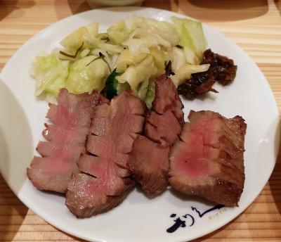 出張時の夕飯で利用。仙台で夕飯を取ってから、八戸に向かおうとうことになり、牛たんの老舗「利久」さんへ。極み定食 牛たん(4枚)にテールスープ、キャベツの漬物の他、サラダ・とろろ・佃煮・甘味付き。肝心の牛タンは肉厚でジューシィ?(゚д゚)ウマーで、ございました。とろろ・佃煮もいい箸休めになり最後まで美味しく食べることができました。