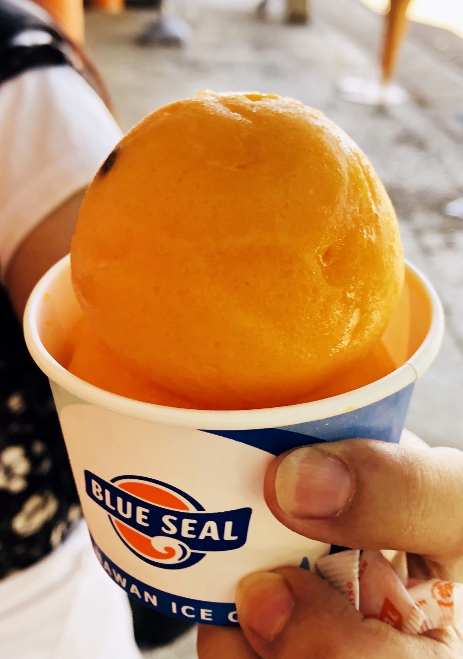 道の駅ならぬ「島の駅」。川平湾観光に便利な有料の駐車場があります。訪問したときは、お土産屋さんのゾーンしか空いていませんでした。ブルーシールアイスのショップがあったので、みんなで食べました♪(∩^ω^∩)本日は、シングルの値段でダブルが買えるとな!?(?゚ヮ゚?)ワオ♪マンゴーとパッションフルーツのダブルで!もちろん(゚д゚)ウマーでございました。