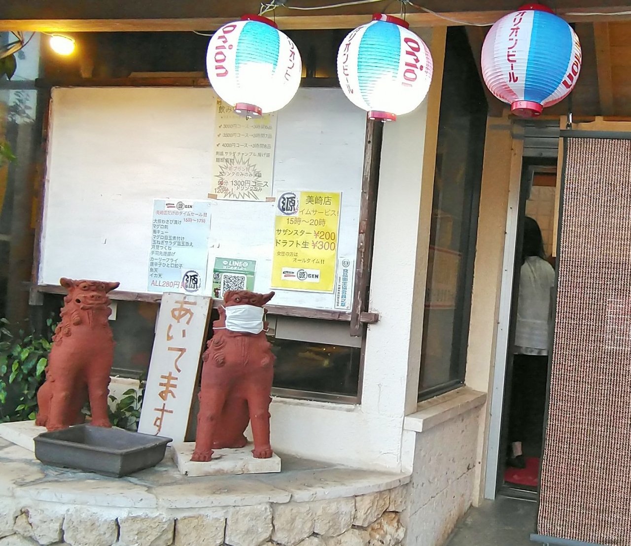 離島マスターの友人オススメの「海人居酒屋 源」に夕飯をたべに行きました♪(^o^)チェーン店なので島にいくつかお店がありますが、伺ったのは美咲店。特に予約はしていませんでしたが、運良く空いていました。玄関に置いてある、シーサーまでマスクしてるのには笑いましたが、入店時にはマスク必須です。オリオンビールにお刺身の盛り合わせ。プチプチ感がたまらない「海ぶどう」と車海老の塩焼き(八重山にはあちこちに車海老の養殖場があるので、生きのいい車海老が食べれます)・お魚とイカの天ぷらをオーダー。どれも新鮮で美味しい!3人で飲んで食べて¥8000弱と、とってもリーズナブルでした~!
