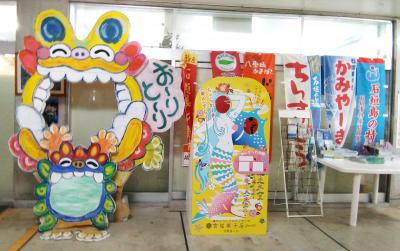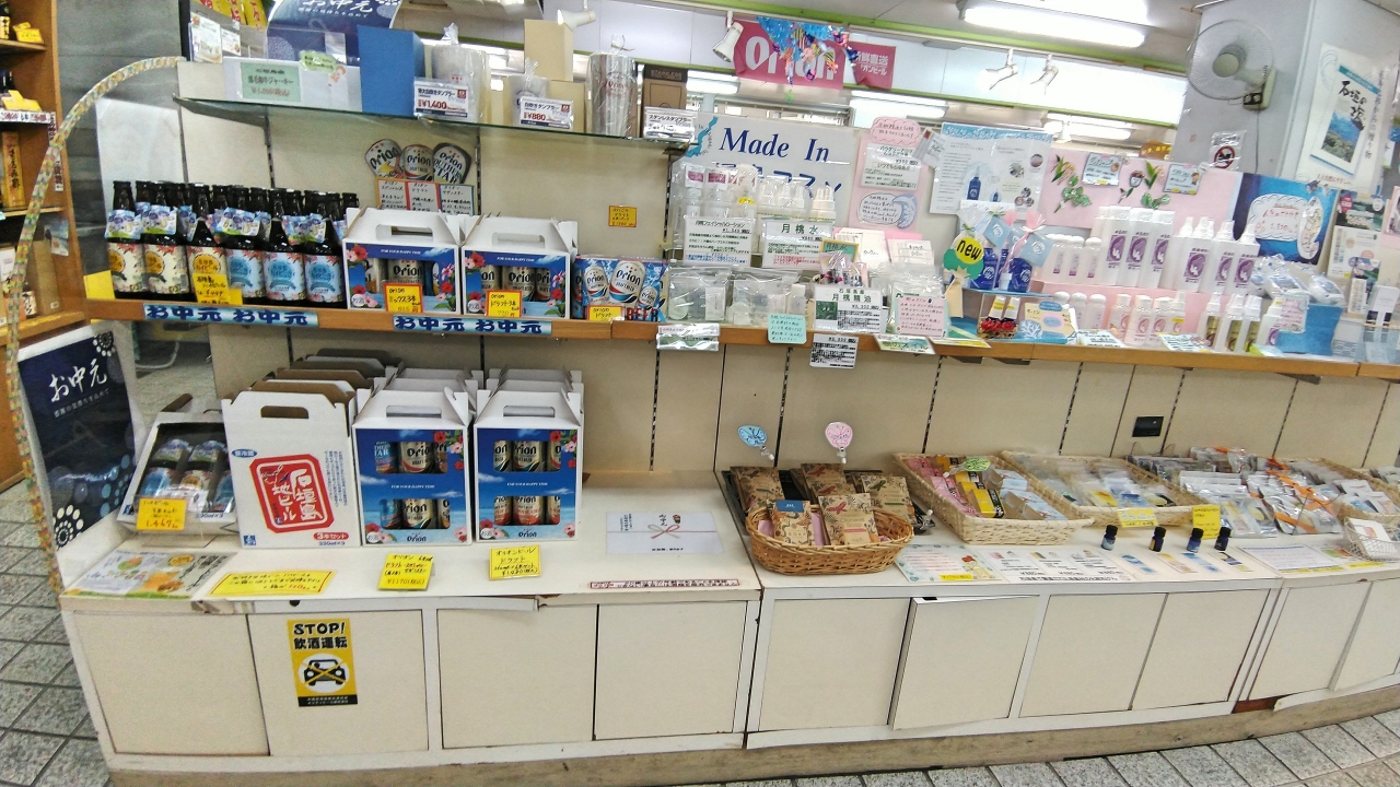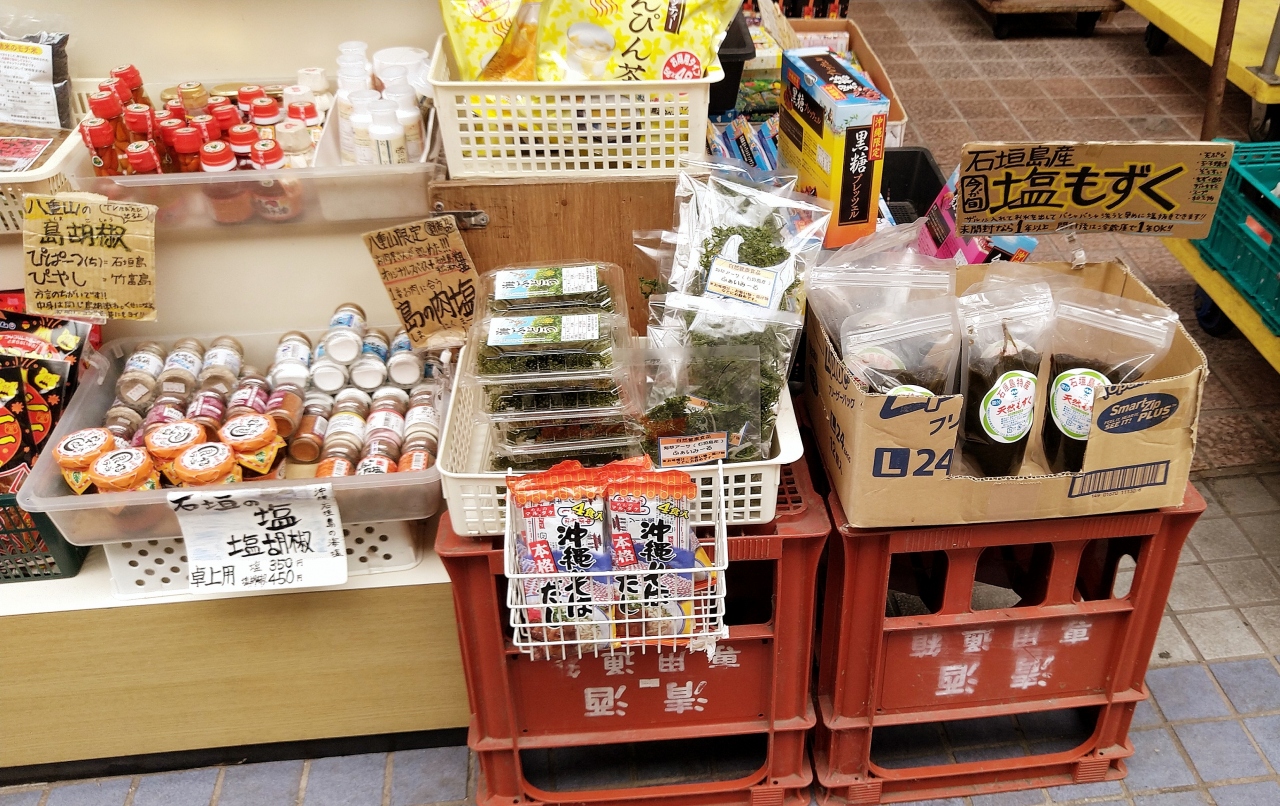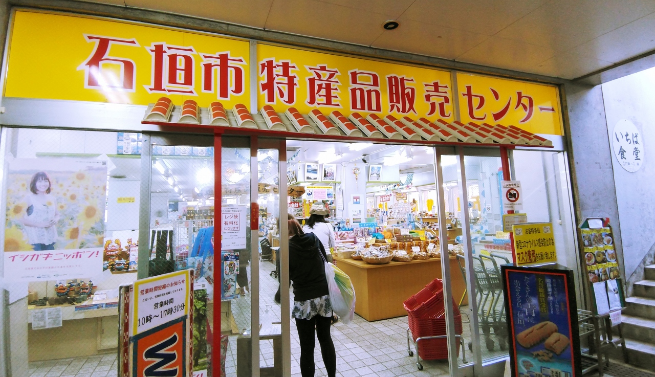 石垣市公設市場の2階に上がったら、記念撮影用の顔出しボードがお出迎え。その顔出しボードの横に、石垣市特産品販売センターはあります。中を覗いてみると、石垣や八重山を冠したお土産物がズラリ。印象に残ったのは「黒糖」。こんな多種多様な黒糖を見たのは初めて!ミンサー織りの小物も可愛かったです。ツアーの途中(昼休憩)だったので、この時は何も買いませんでしたが、後から買っておけばよかったと後悔。気に入ったものは、見つけたときに買うのが鉄則ですね。