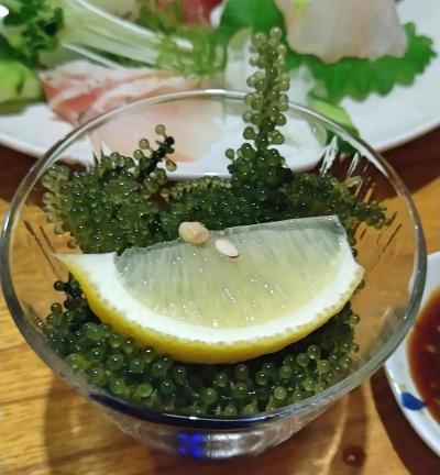 ここは、島唄三線ライブが聞ける人気のお店です。人気な上、今は来店者の人数を制限しているので、予約必須です。ライブは19時と21時の2回。私達は、1ヶ月位前に21時からの回を予約しておきました。名物「ザルもずく」は、めんつゆでそうめんのように もずくをいただきます。これがメチャ(゚д゚)ウマー!