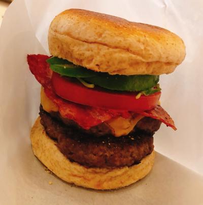 ここのお店は、石垣牛を使ったパティが名物のグルメバーガー屋さん。バーガーとドリンクのセットをオーダー。私と友人は、アボカドわさびバーガーをオーダー。石垣牛100%のパティは、ジューシィで旨味の極み!(∩^ω^∩)ホッペガオチルー