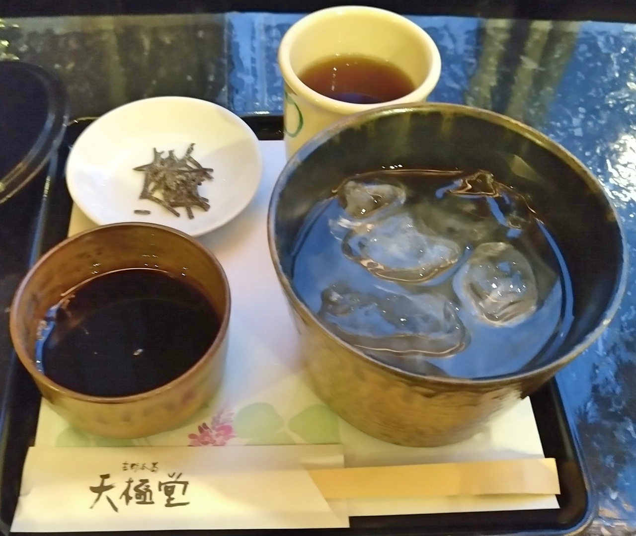 奈良公園周辺の観光を一通り終えたので、オヤツを食べに「天極堂」さんにやってきました。天極堂さんは、吉野葛を使った和菓子の老舗です。くず餅と迷って、くずきりをオーダー。歯ごたえのある、もちもちツルツルの食感がたまらなーい!(^o^) 黒蜜もコクがあり、大変美味しゅうございました♡