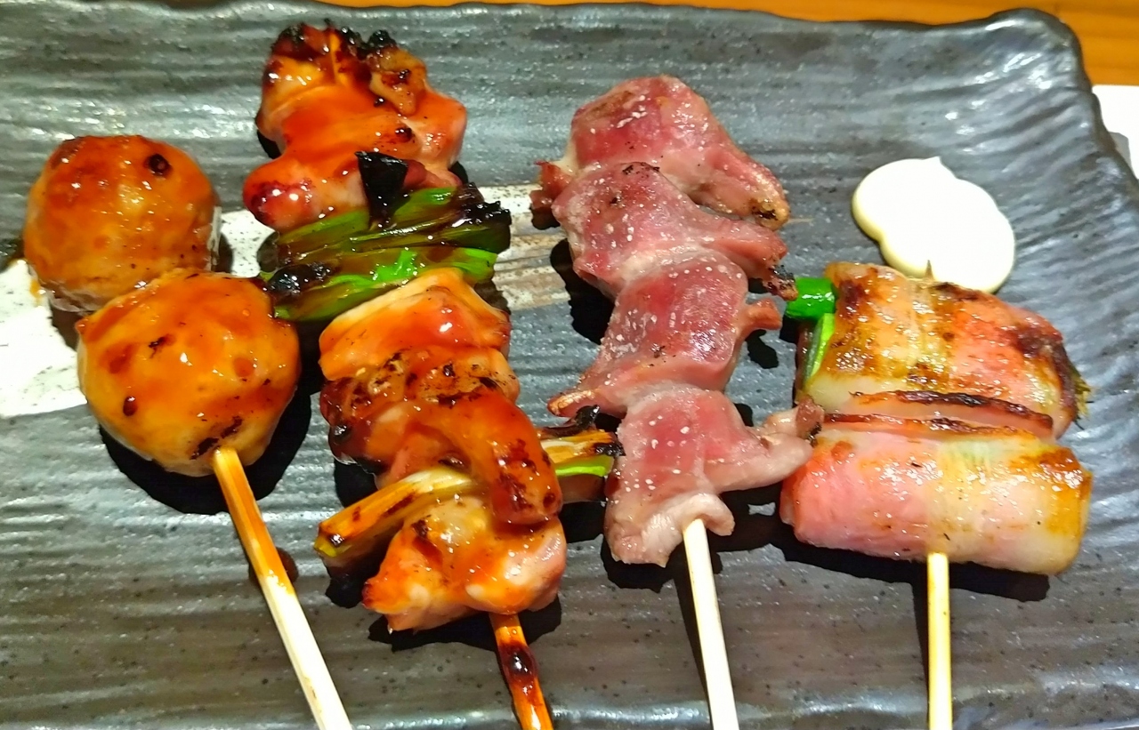 大和肉鶏のお造り三種盛り(ムネ・ササミ・モモ炙り)とっても新鮮で(゚д゚)ウマーでした。お次は、手羽先(カレー味)食欲をそそるカレー風味と、ピリ辛加減が絶妙!最後は、焼きもの4種(ツクネ&ネギマ(タレ)・砂肝&アスパラベーコン(シオ))どれも歯応えよく、美味でした♡(๑´ڡ`๑)- 旅行時期