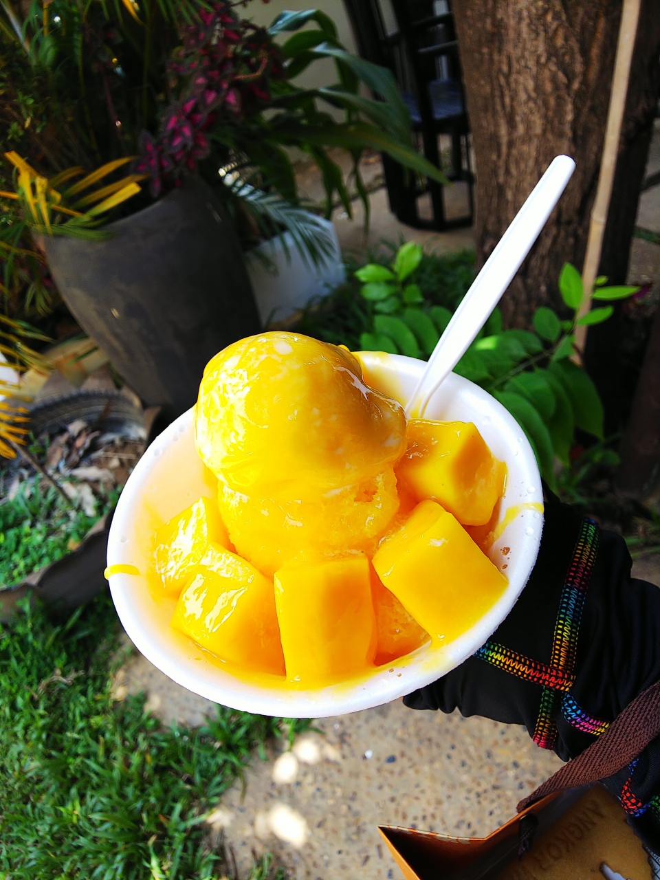 クッキーショップにはカフェも併設されているので、テイクアウトでマンゴーかき氷買いました♪(^o^)- 旅行時期