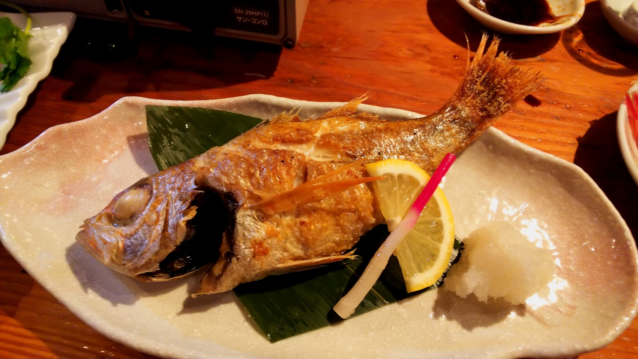 まずは、地酒三種の呑み比べセットをオーダー。突き出しは、菜の花の辛子和えでした。板さんにおすすめを聞きながら、白エビの唐揚げ・牡蠣のホイル焼き・お任せのお造りに海藻のしゃぶしゃぶにのどぐろの塩焼き!めっちゃ美味しかった―!!!他にカブラの蒸し物やお茶漬けなど、お腹いっぱい酒も結構飲んで¥15000ほどでした。- 旅行時期