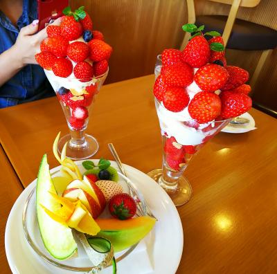 パフェの中は、ソフトクリームとイチゴのシャーベット、コーンフレークに さらに生のイチゴも入ってる念の入れよう。それなのに、千円でお釣りがきちゃうからコスパも最高!チョーおすすめでーす!- 旅行時期