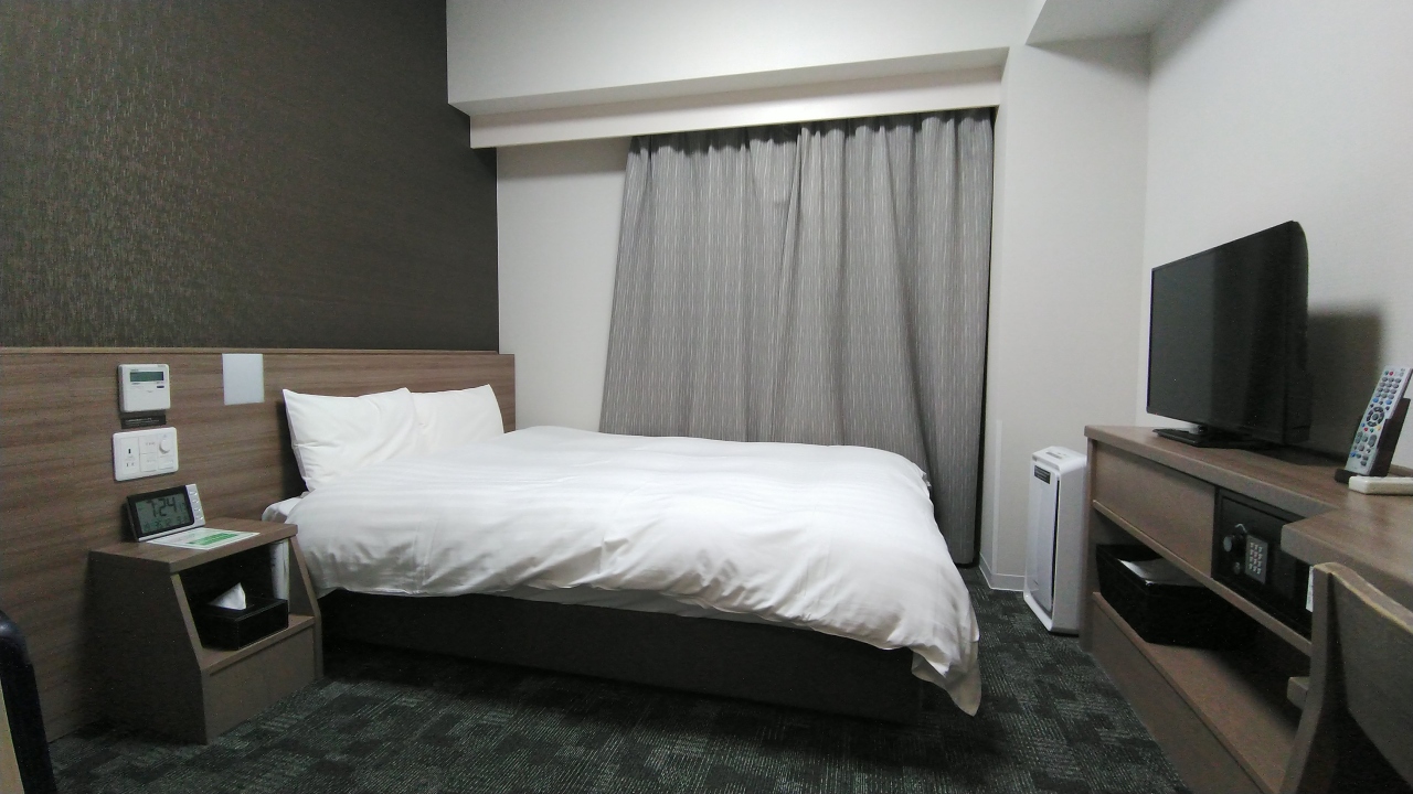 長野駅前 徒歩3分くらい?にあります。禁煙シングルルームに宿泊。ドーミーインは、マットレスの硬さが私には丁度よく、寝やすいです。