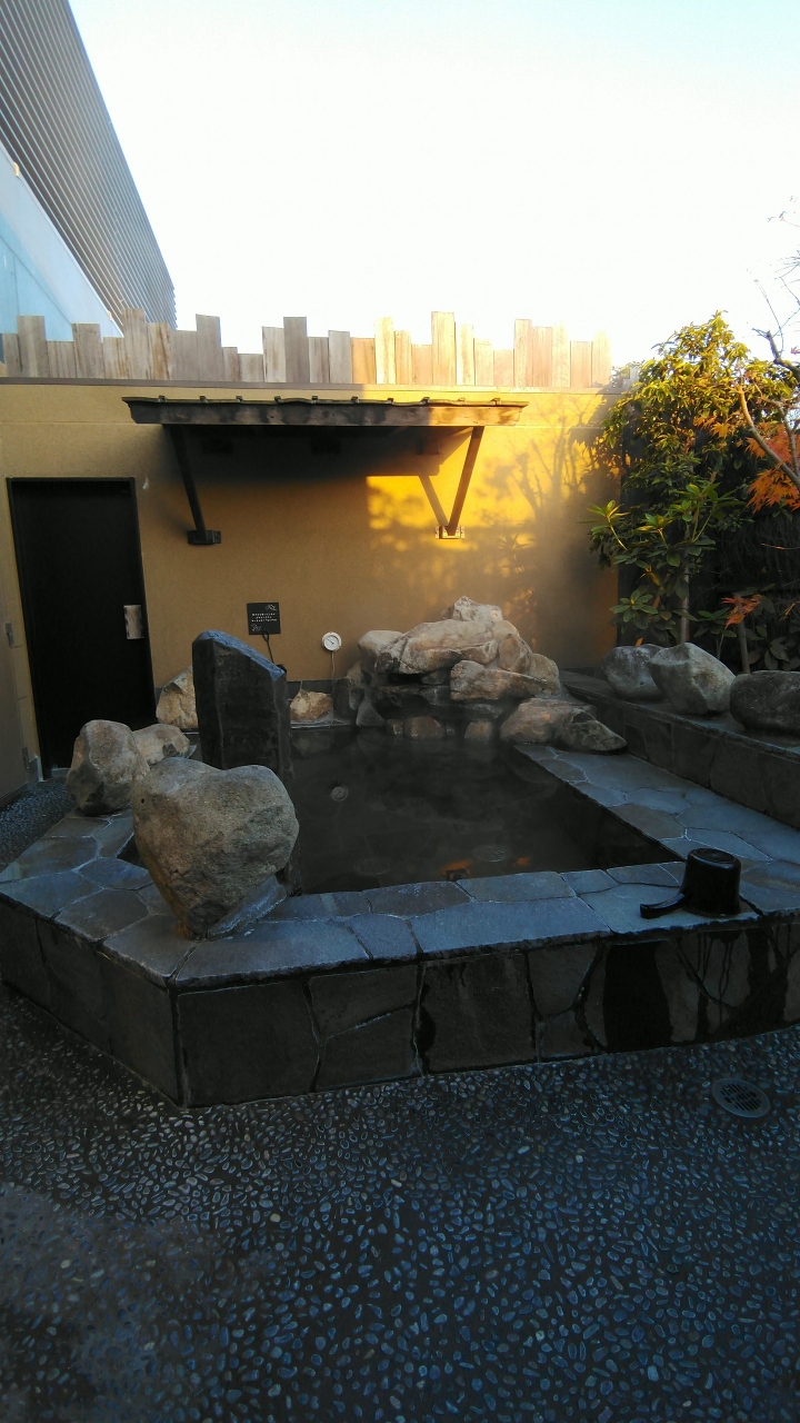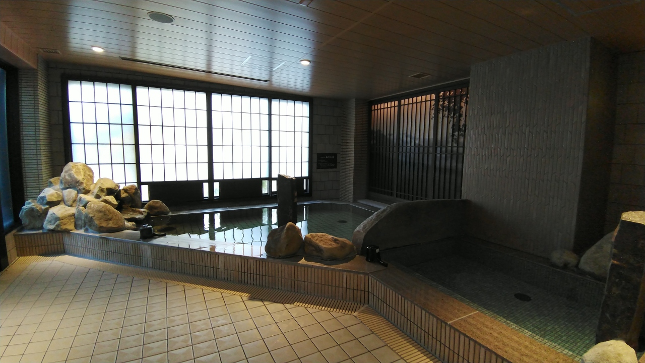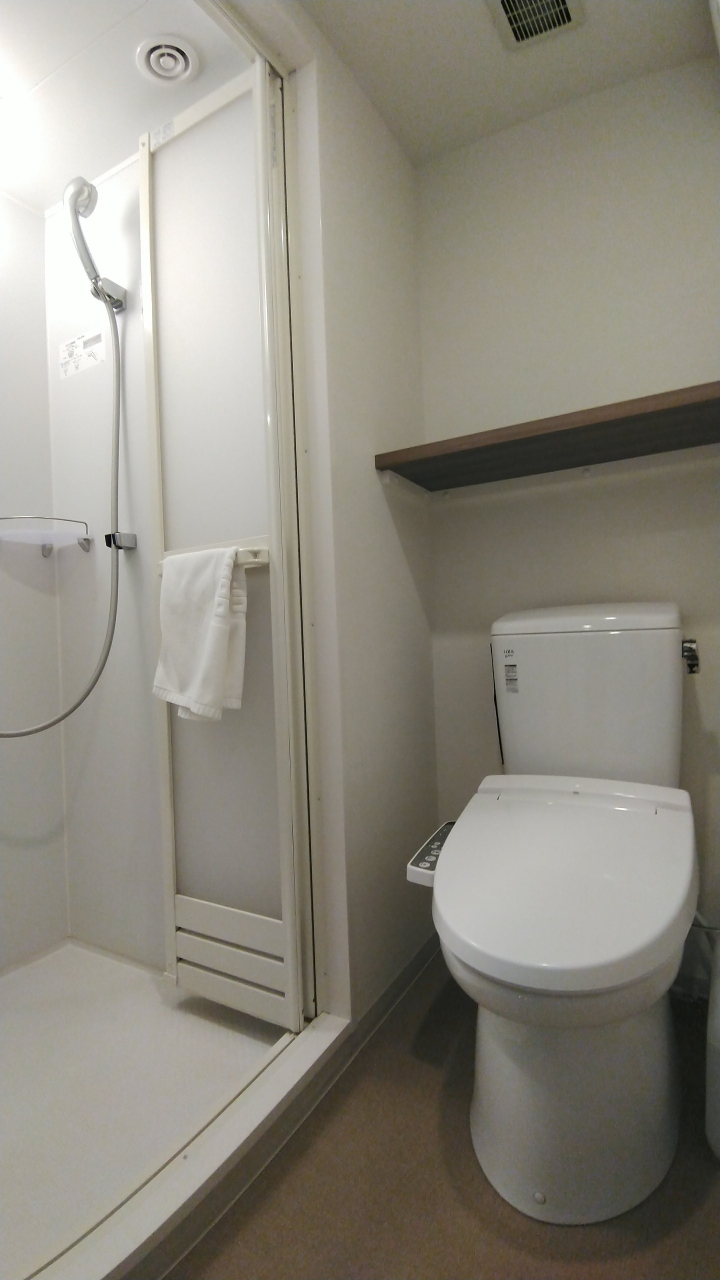 洗面スペースとトイレが別なのも嬉しい。部屋にはシャワーしかありませんが、天然温泉の大浴場があります。小さいながらも露天風呂もありますよ。