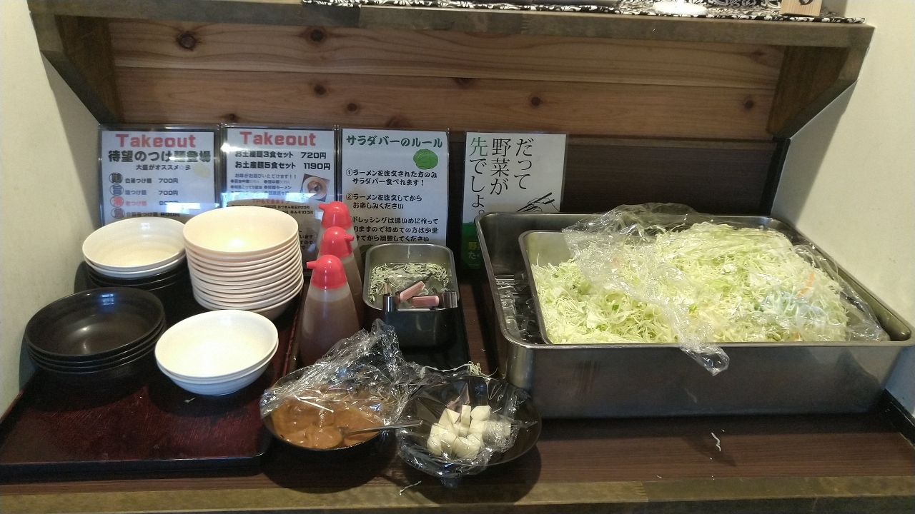 なんとここのラーメン屋さん、ラーメンを注文した人なら、誰でも食べれる無料のサラダバーがあります。