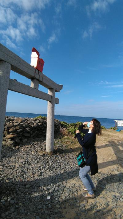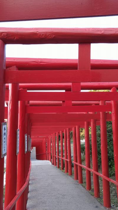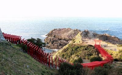 仙崎港からグーグル先生によると、車で30分程って事だったんですが…途中から渋滞が始まり、1時間経っても着きません(^_^;) すれ違いも難しいような細い山道なので、引き返すこともできず、なんとか駐車場に着いたときには2時間近く経っていました。でも、写真で見た「連なる赤い鳥居」を見た瞬間テンションMAX!(笑)鳥居の上に取り付けられている「日本一入らない賽銭箱」は、外されていました。伏見稲荷然り、これだけ鳥居が連なっていると「異次元感」あります。空も海も鳥居もキレイでした。
