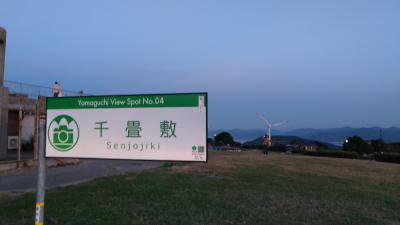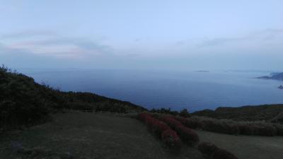 元の隅神社で思いの外時間がかかったので、角島での夕日は諦めて 千畳敷に向かいました。千畳敷は高台にあり景色がいいとのこと。キャンプ場も併設しています。東側は海が見えました。日没には間に合わなかったけど、西側でキレイな残照が見れました!