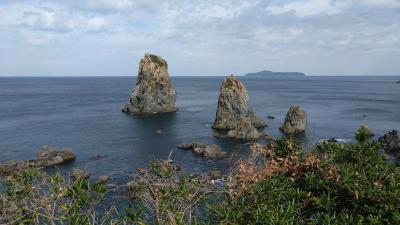 青海島の奇岩を見学するために訪問。昨日、強風のため遊覧船がショートコースと不発だったので、見れなかった奇石を遊歩道から見学しに行きました。駐車場には、看板にゃんこの「ももちゃん」が居ました。ここの話好きな管理人さんは、要注意ですよー!捕まると、延々話し続けて止まりません(笑)青海島は「日本の渚100選」に選ばれているそうです。山道歩き始めて10分ほどで、岩礁が見えてきました。セムラと言うそうです。十六羅漢やカモメ岩・象の鼻など、奇岩の宝庫です。遊歩道は、ほぼほぼ山道なので、歩きやすい靴で行くことをオススメします。