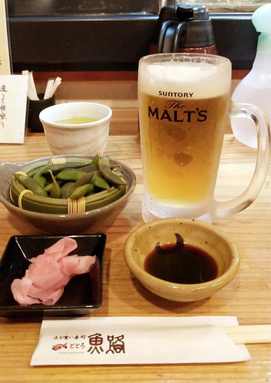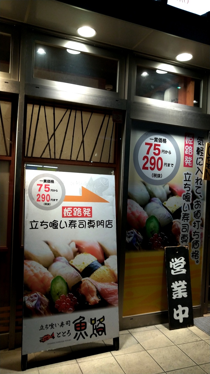 姫路に来たら、必ず一度伺う「魚路」(ととろ)さん。コスパ最高!の立ち喰いのお寿司屋さんです。昼は行列必至で、1~2時間待ちはザラですが、夜は比較的待たずに(10~20分程度)入店できます。ビールと黒枝豆のセット ¥290!(º ロ º๑)!!いやイヤいや、¥290て…安いにも程があるだろー!www そして、お寿司のオーダーは 特上握り¥1560