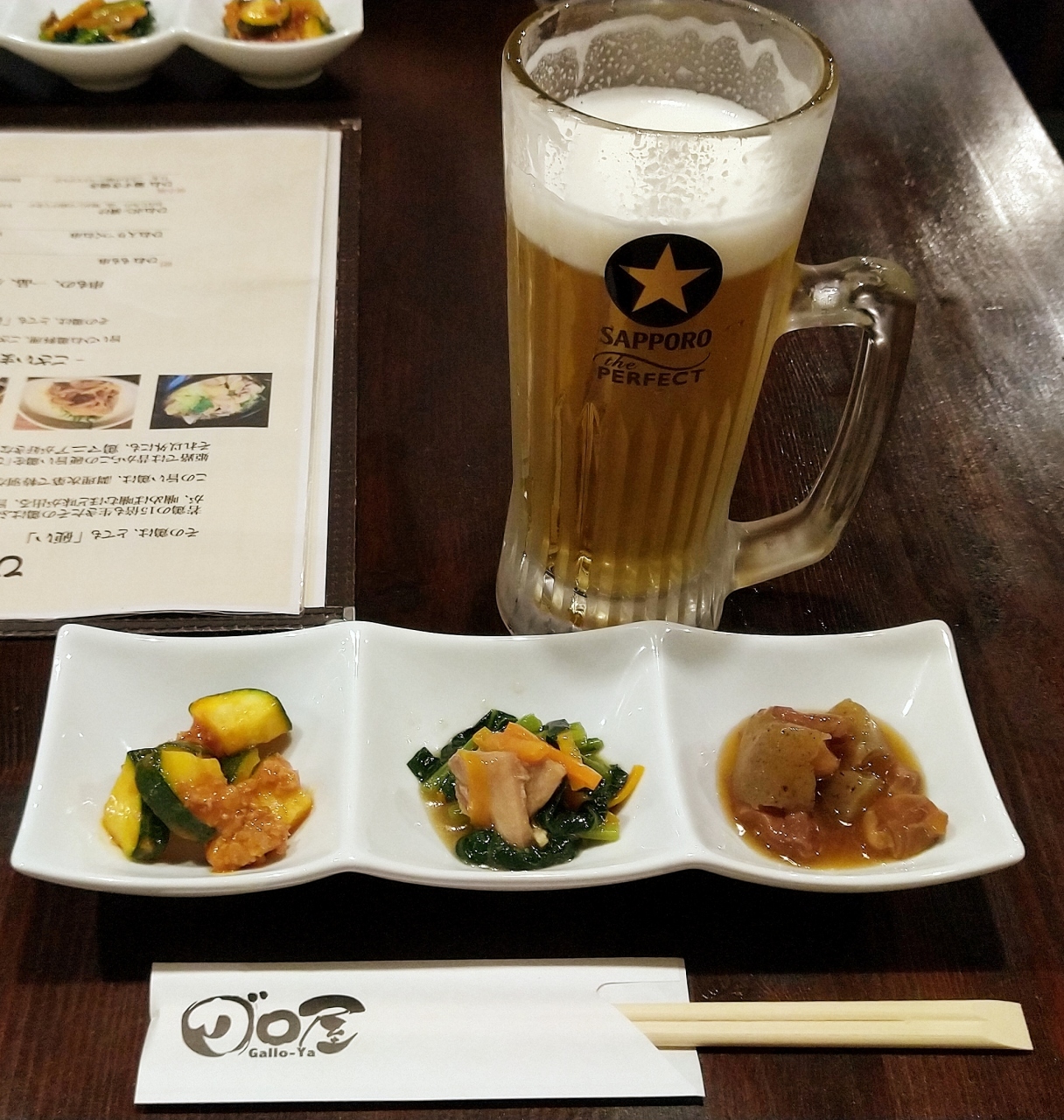 姫路出張の折に利用。前日はお寿司だったので、2日目の夜は「地鶏と干物料理のガロ屋」さんへ。ビールのアテに出してくれたのが、ちょいとシャレオツな3種盛り。