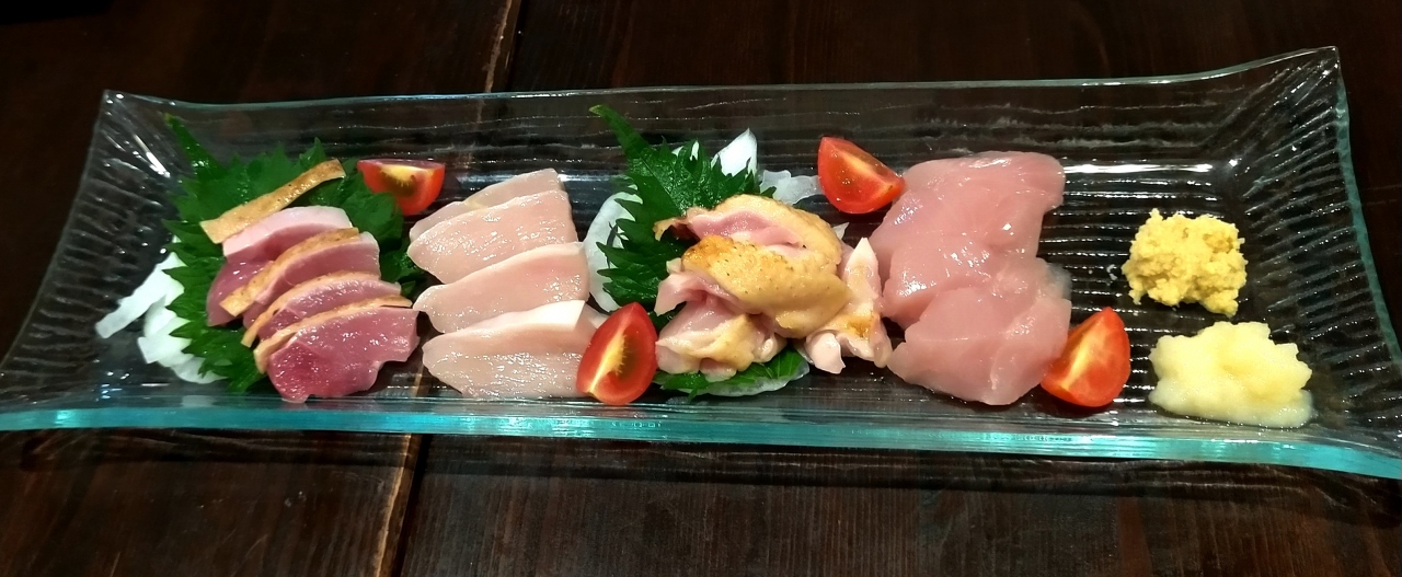 もも叩き・ムネ・フリソデ叩き・ササミ。臭みや生臭左から、さは一切なく、新鮮でジューシィなお肉たちでした。特にフリソデ(手羽の付け根)は、脂が乗っているうえに歯ごたえがあって、美味でした♪(๑´ڡ`๑)