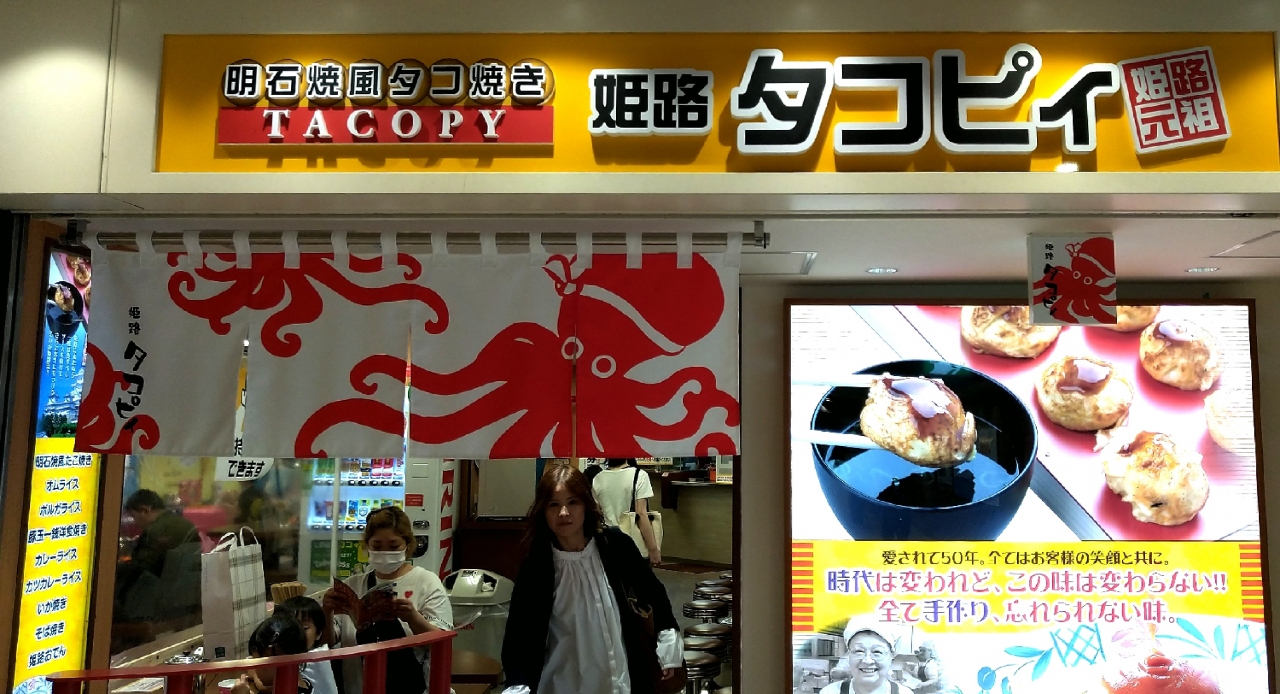 姫路出張の折に利用。最終日のランチは軽めに姫路たこ焼きを♪登録は「タコピア」ですが、二年ぶりに伺ったら「タコピィ」に変わってました。でも、たこ焼きの味と働いてるおばちゃんは変わりはなく、安定の美味しさでした!