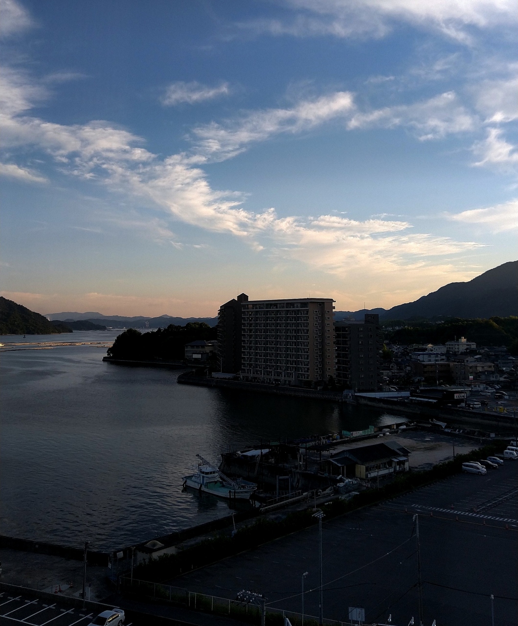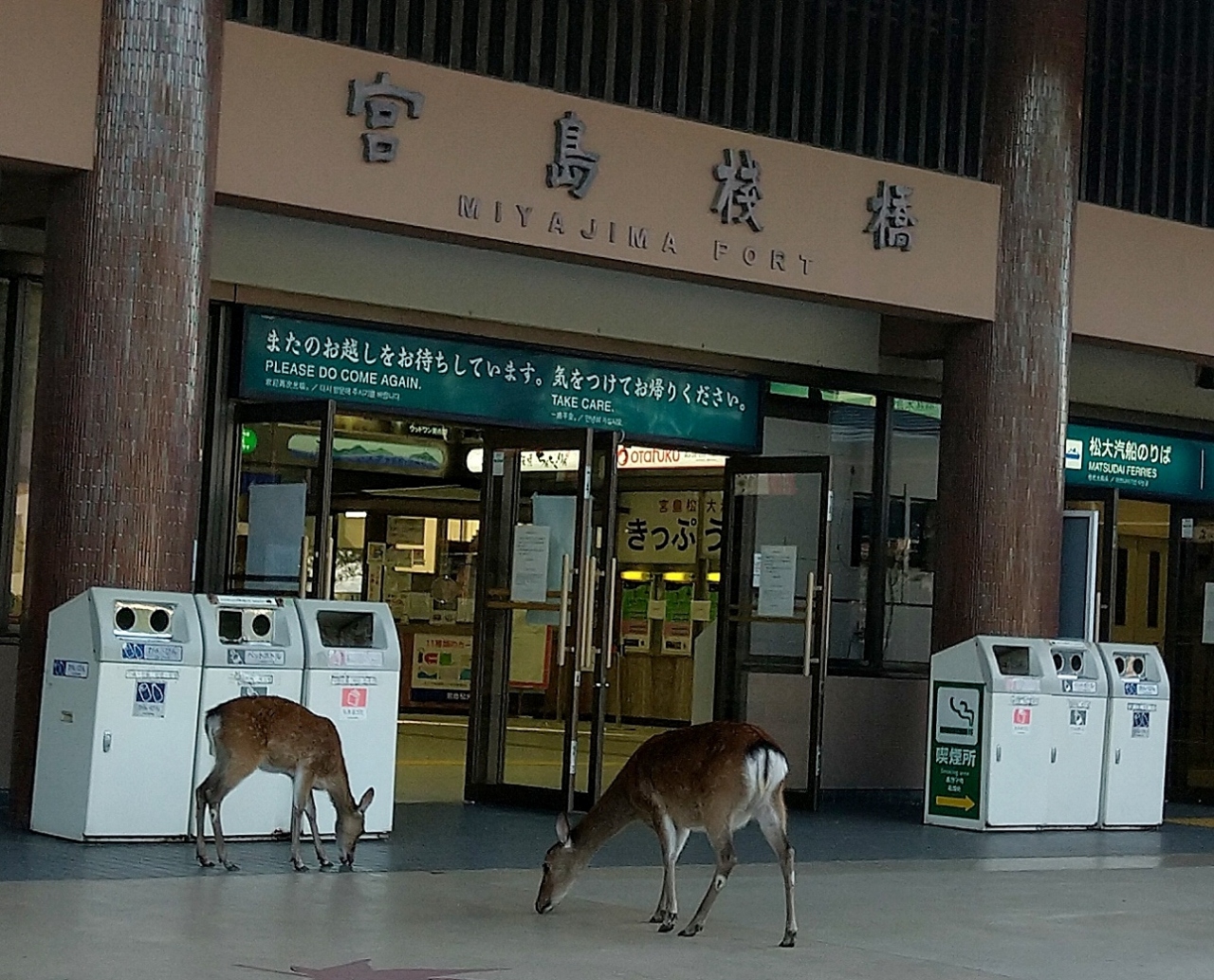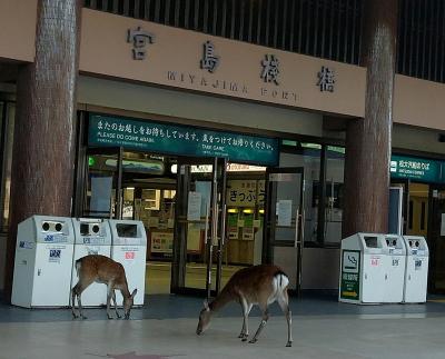 宮島桟橋すぐ横に建つ、好立地のホテルです。フロントを真ん中に、左側に本館・右側に新館があります。お部屋は、新館の9階でした。大浴場は、ありません。シングルの部屋に、1泊和朝食付きで、税込み¥5670(コロナゼロ)というお得なパックがあったので利用しました。海の側とはいえ価格が安いので、眺望は期待していませんでしたが、海が見えるお部屋でした♪(^o^)
