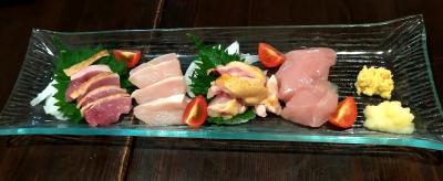 鶏刺しから、花尾鶏 お造り盛り合わせ(4種)