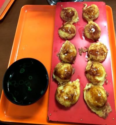 姫路たこ焼きの特徴は、お出汁に浸して食べるけど、ソースも付けちゃうってとこ。明石焼きのお出汁より塩分がかなり少ないので、ソースを付けても塩辛くないどころか、付けたほうが美味しい(笑)という、ちょっと変わったたこ焼きです。でも、これが(゚д゚)ウマーwww- 旅行時期