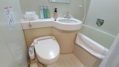 グーグル検索すると徒歩5分と出ますが、実質3分程度とかなり駅近です。泊まった部屋は、禁煙シングルルーム。独立洗面台にトイレとシャワー。シャワールームには扉がついています。お部屋にシャワーしかない理由は、ドーミーインには天然温泉の大浴場が併設されているから。残念ながら宿泊したときは、温泉施設の点検中とのことで、沸かし湯になってしまいましたが、大きいお風呂は気持ちよかったです。ほか、夜21:30~の無料夜鳴きそば(半ラーメン)が有名ですが、今回は利用しませんでした。