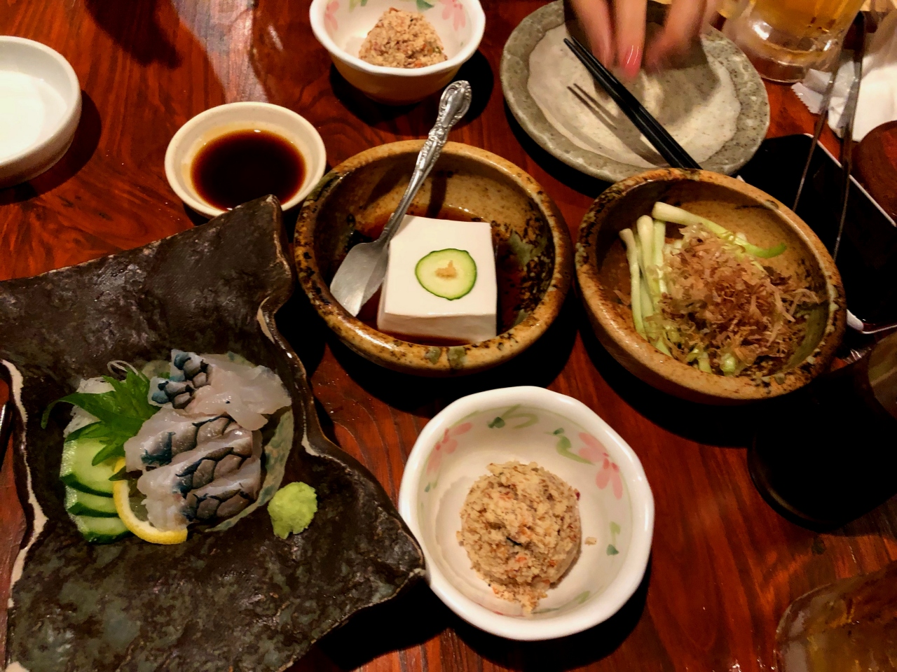 たまたま宿泊ホテルの隣で島唄ライブをしている居酒屋さんを見つけたので予約していきました。ライブチャージは¥500。もともとは焼き肉と沖縄料理がメインのお店。イラブチャーのお刺身に島らっきょう、ジーマミー豆腐にもずく。もちろん海ぶどうにポーク玉子も!焼き肉は、石垣牛のカルビと特上ロースも♪(^o^)どれも美味しくいただきました。お腹いっぱいになった頃、島唄ライブが始まりました。「島人ぬたから」を始め、賑やかな沖縄民謡を歌ってくれます。お祝いの宴をしていた地元の方達は、さっそく踊りまくってました!(笑)ライブも大盛りあがりで、とても楽しいお店でした♪(^o^)