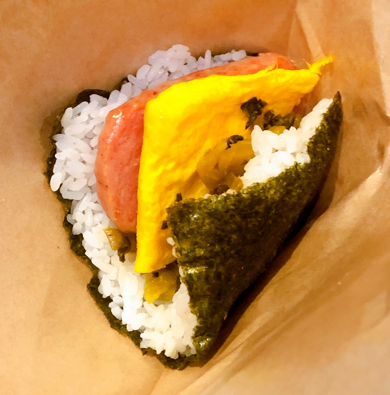 朝ご飯を食べに牧志公設市場まで向かう途中、市場本通りをウロウロしていたときに発見。これは「ここで食べなさい」との、神様の暗示に違いない!(笑)と思い、スタンダードな、ポークたまごおにぎりを購入。お店の斜め向かいには、専用の飲食スペースがあったので そこで実食!(๑><๑)۶大変ウマーでございました。