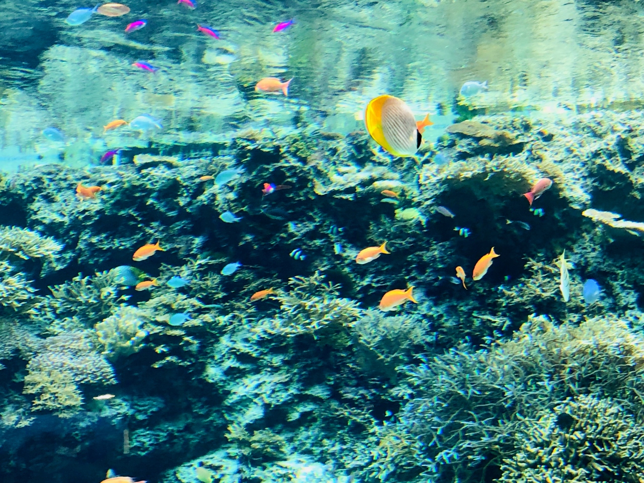 館内は、色とりどりの熱帯魚が泳ぐ、珊瑚の海ゾーンや熱帯魚の海ゾーン。黒潮の海には、ジンベエザメが2匹。その大きさには、圧倒されます!館内は、ゆっくり見て2時間程度かな?再入場もできます。園内の無料ゾーンには、ジュゴンやウミガメが見学できる施設もあり、とても楽しかったですよ♪(^o^)- 旅行時期