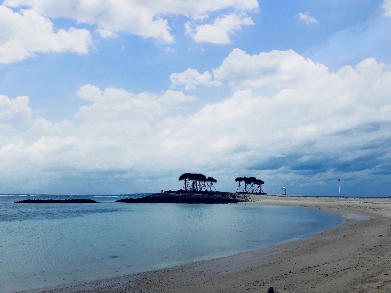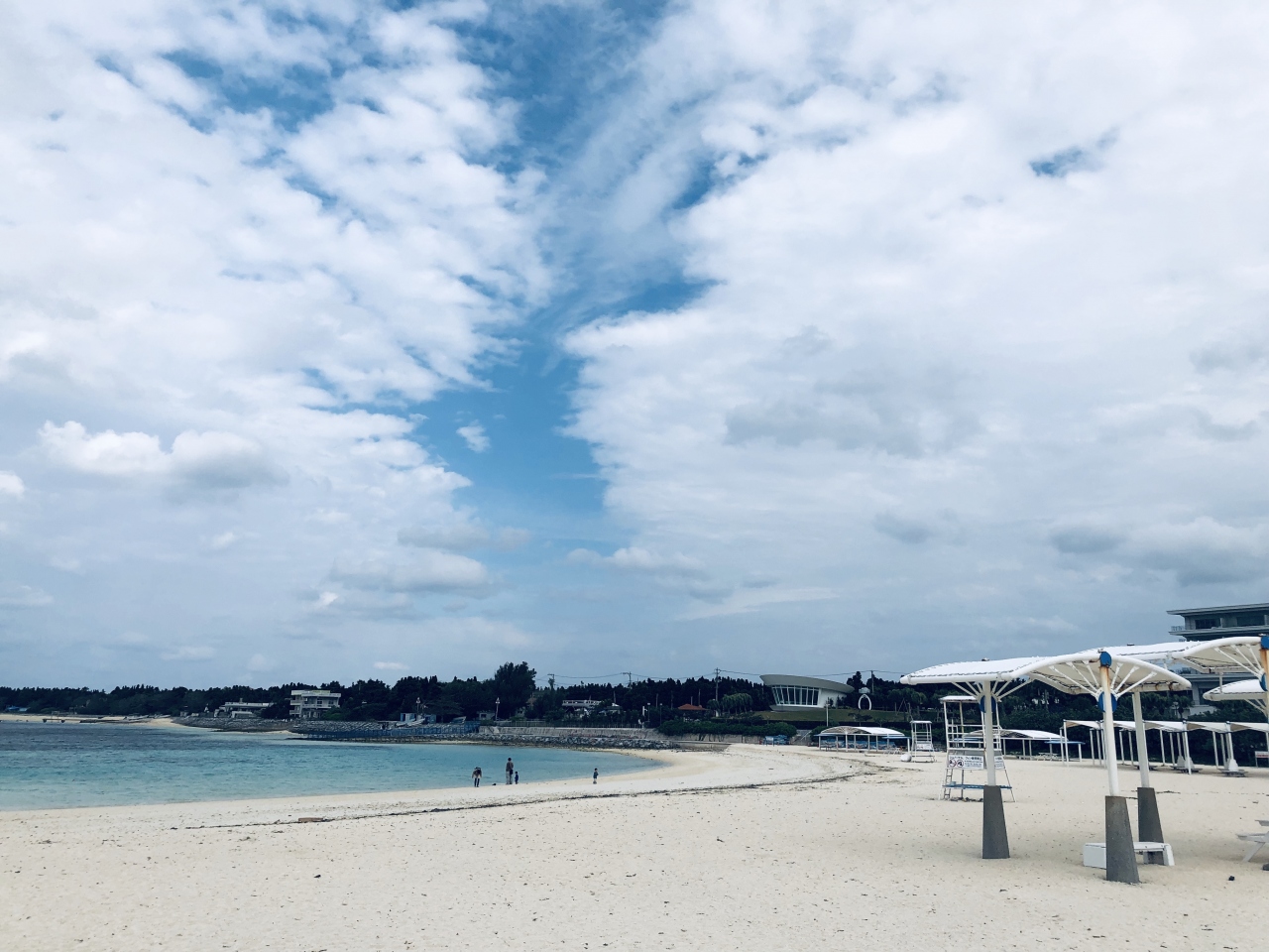 美ら海水族館奥にある、チョーきれいな人工ビーチ。夏場は、泳ぐことができます。行ったのはシーズンオフの1月でしたが、ビーチのきれいさは、ピカイチ!砂浜を散策したり、ボーッと海を眺めたり、癒やしの時間を満喫しました。