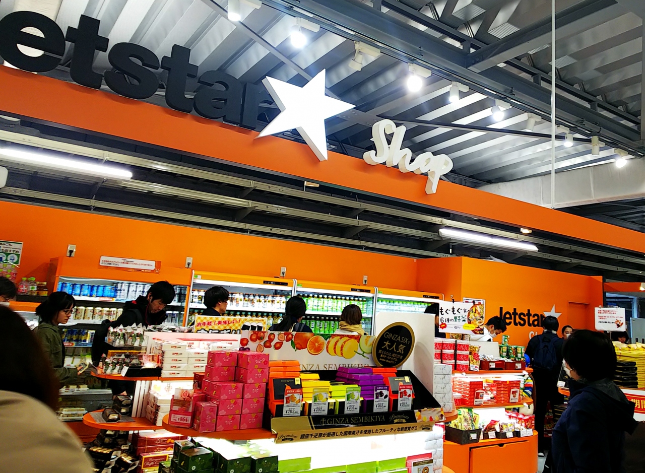 成田空港第3ターミナル国内線の搭乗口は、ジェットスター一色です。ジェットスターで経営しているのが、スターショップ。ジェットスターは、飲み物や食べ物を機内へ持ち込むことが可能。もちろん、持ち込んだ食品を機内で食べたり、飲んだりするのも自由です。なので、皆さんここで色々買い込んでいました。