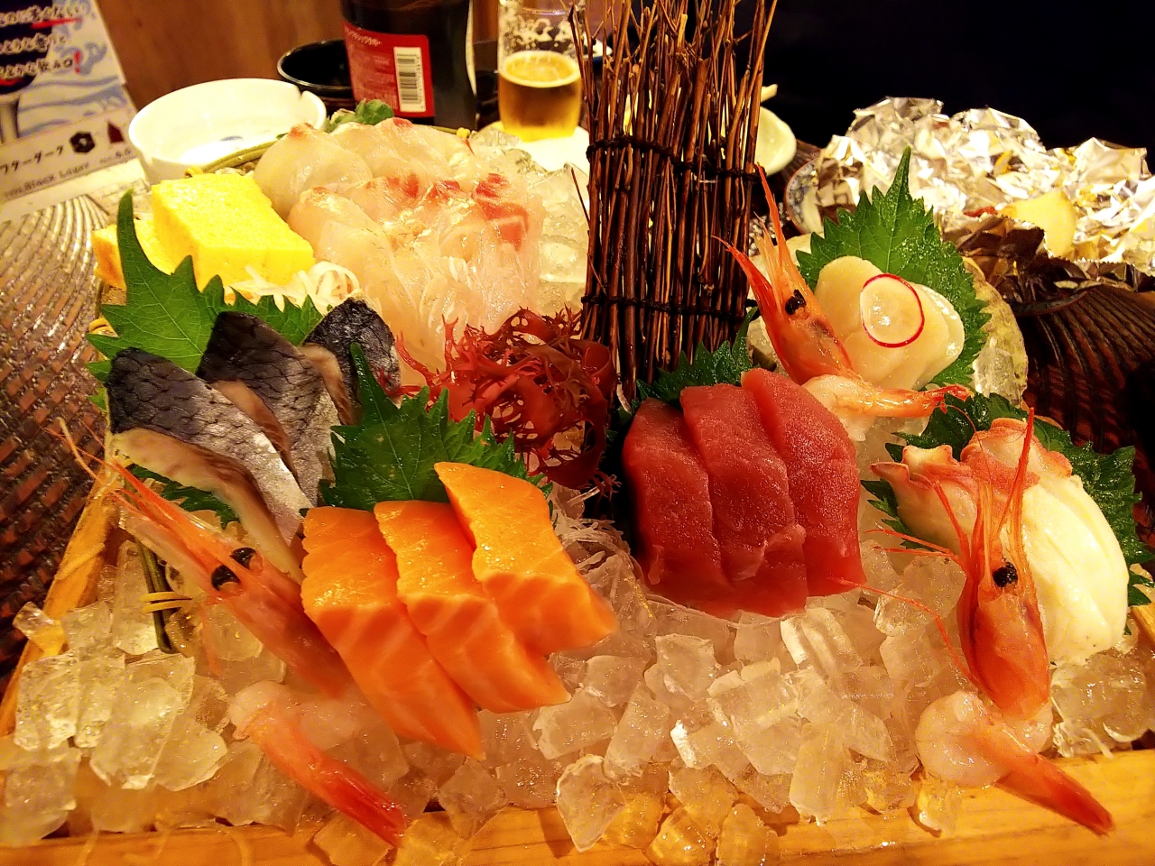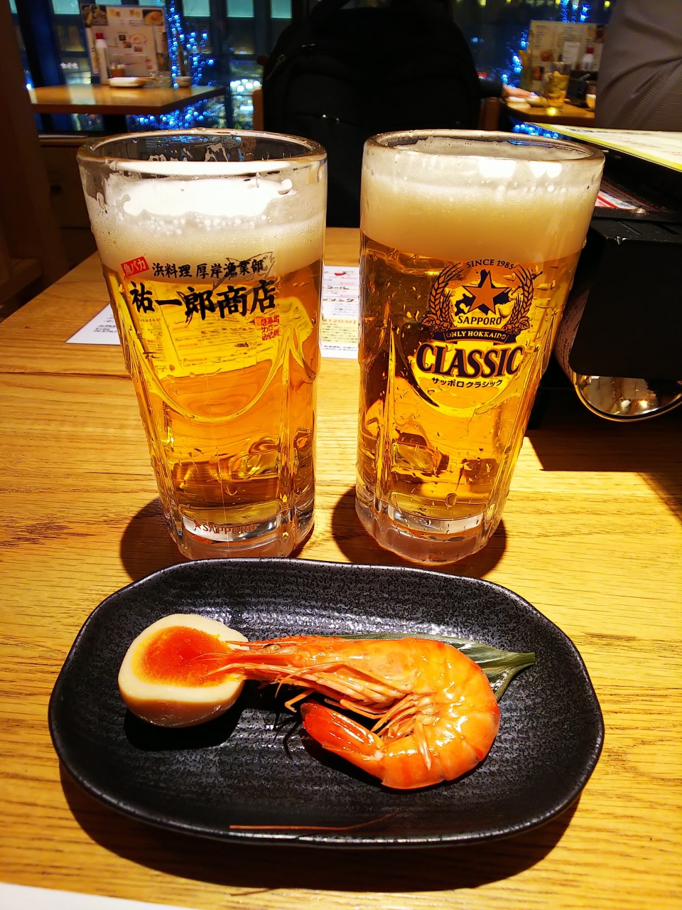 札幌出張時に利用。ジモティの方オススメの海鮮居酒屋です。とりあえず「サッポロクラシック」で乾杯!突き出しに、エビのうま煮!これだけでも、お店の「本気加減」が分かります。刺身盛り合わせ3人前が、クーポン利用でなんと¥980!!!\(^o^)/ほか。焼き牡蠣や氷下魚、ザンギなんかも頼んでお一人様¥3000ちょっとと、とてもリーズナブルで美味しゅうございました(^o^)